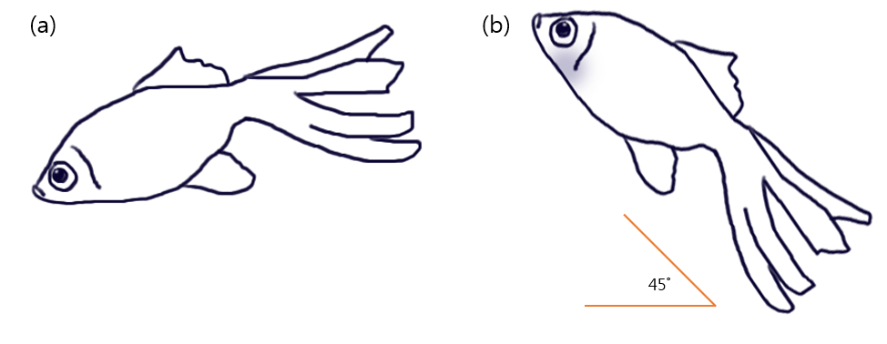 어항 가까이 갔더니 이상한 자세로 수영을 한다. 고개를 들고 비스듬하고 극성스럽게 수영한다.