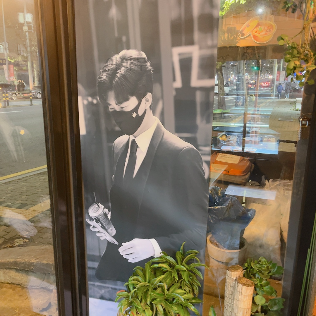 홍대 코리아식당 앞에서 임영웅님 포토카드를 들고 사진을 찍어보았다.