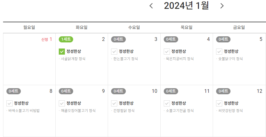 처음에는 암환자식, 이후로는 쭉 정성한상을 먹었고, 11/16 이후부터 리뉴얼된 new 정성한상도 먹었다.