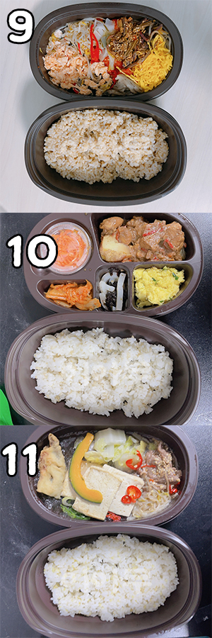 메뉴는 13가지 정도 된다. 나는 이 중에 여러 이유로 못 먹는 음식을 제외하고 11가지를 먹어보았다. 차갑게 오므로 전자레인지에 2분 30초쯤 돌려먹으면 된다.