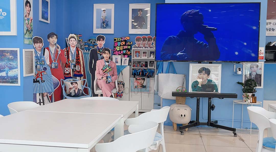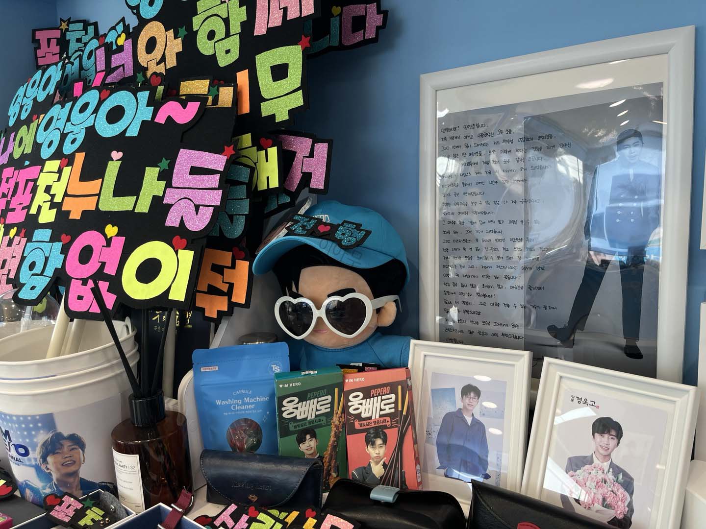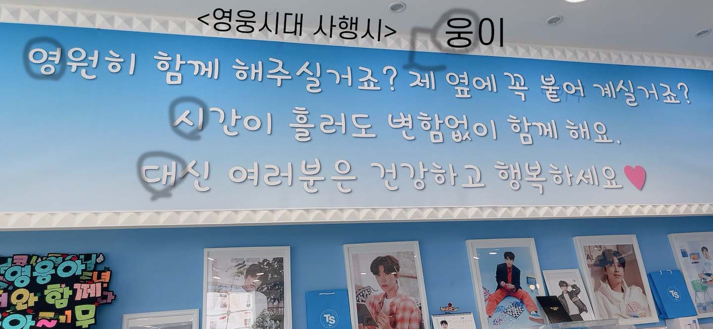 카페는 영웅님 굿즈로 가득했는데 다른 손님들도 있어서 자리와 가까운 곳과 굿즈가 모여있는 1/3 정도만 촬영했다.
