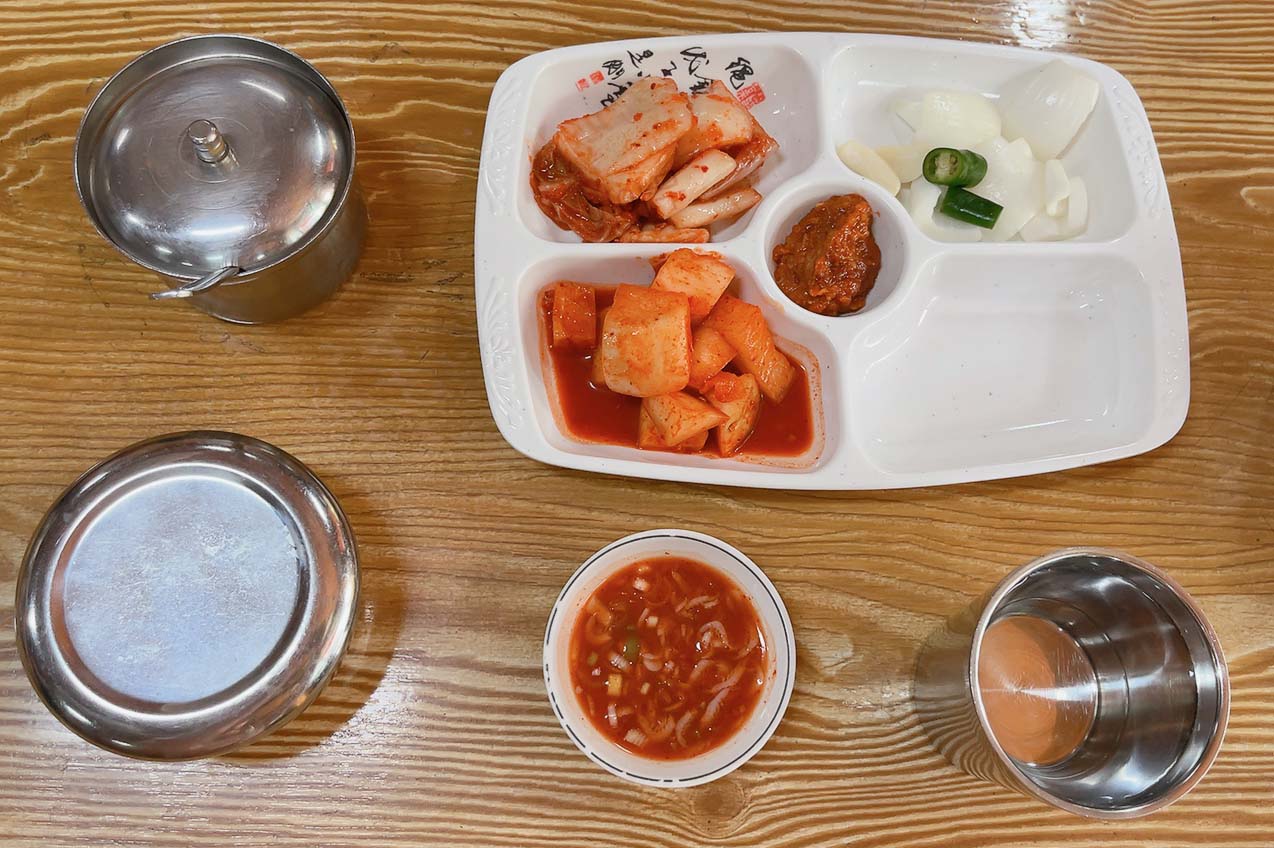 순대국이 나오기 전에 밥과 밑반찬, 양념장, 물이 나왔다.