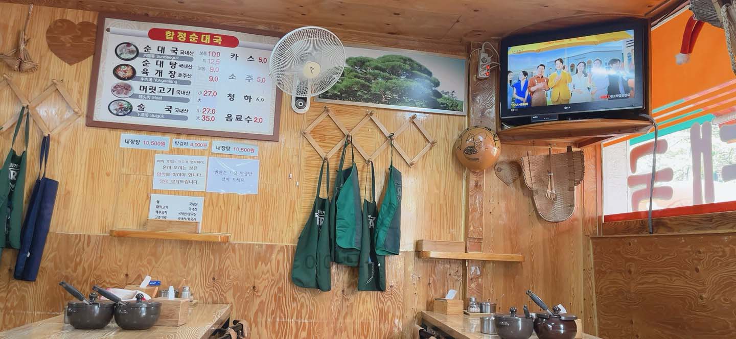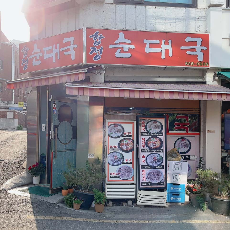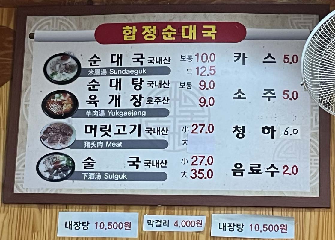 합정순대국에는 순대국, 군대탕, 육개장, 머릿고기, 술국, 내장탕 등의 메뉴가 있었고