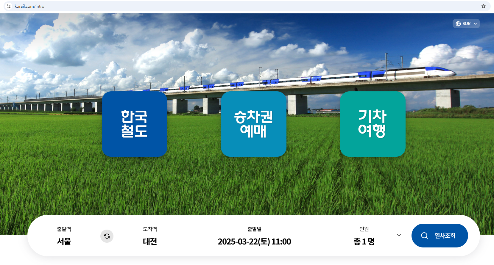 : korail.com 에 들어갑니다. '승차권 예매'를 클릭합니다.