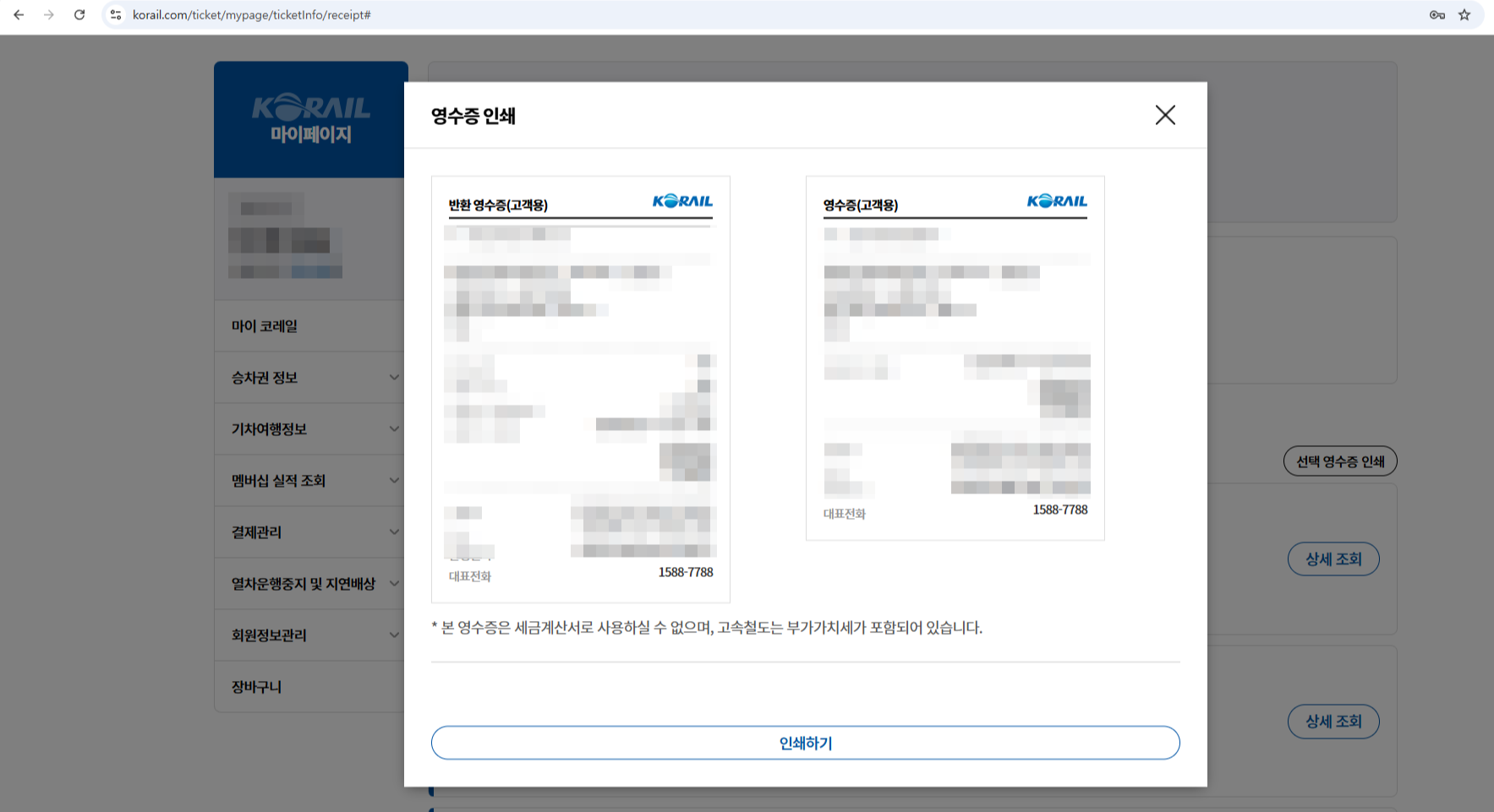 코레일 기차 영수증 뽑는 법을 다루고자 합니다